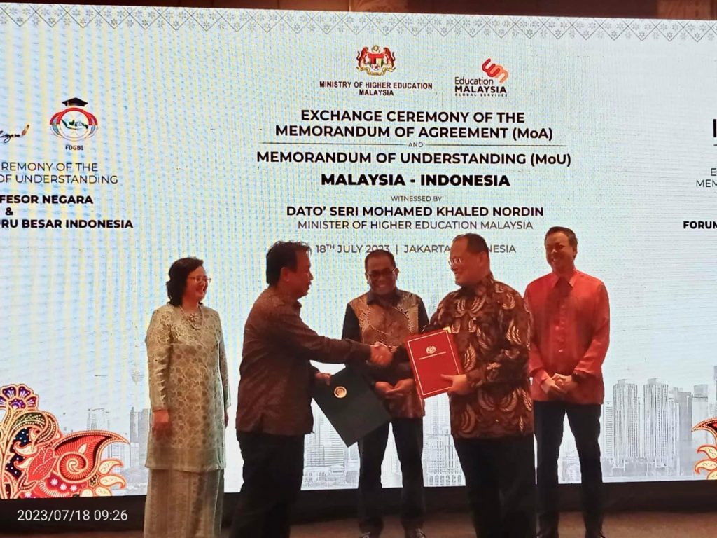 Dalam sambutannya Menteri Pendidikan Tinggi Malaysia, Dato Seri Mohamed Khaled Nordin, menyatakan perlunya memperkuat hubungan, terutama dalam pendidikan tinggi antara Indonesia dan Malaysia. Disampaikan bahwa, kunjungan perdana-nya ke Indonesia bertujuan untuk mendukung kolaborasi baru antara lembaga pendidikan tinggi Indonesia dan Malaysia. Nordin menekankan bahwa sejarah kerjasama pendidikan antara Indonesia dan Malaysia sudah mapan, dan 10 kolaborasi baru ini, termasuk dengan Forum Dewan Guru Besar Indonesia, bertujuan untuk lebih meningkatkan hubungan dalam domain pendidikan tinggi.
